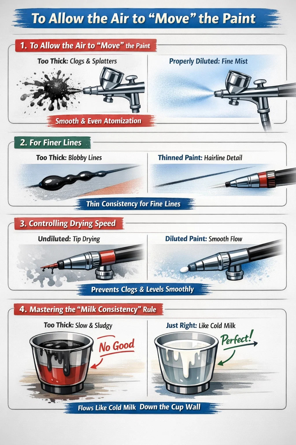 Anche le vernici etichettate "Airbrush Ready" spesso richiedono lievi regolazioni in base alla temperatura del giorno, alla pressione dell'aria e all'effetto desiderato.